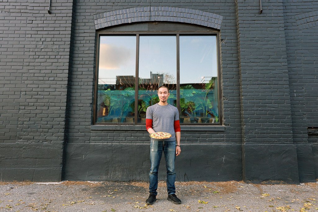 Hi! My name is Eddie and I’m from Big Trouble Pizza, and my story about pizza started when I wanted to open a pizza shop. I didn’t know how I was gonna do it; I didn’t know how to make pizza, so I thought the best way to start was to eat ALL the pizza I could. And so we basically ate pizza for a year everywhere we could and we found that there wasn’t a single pizza that we absolutely loved that we could eat over and over and over again. That was important for us. So after trying all the pizzas we decided that a lot of people have this preconception of not eating the crust; they expect to not eat the crust when they go into a pizza-eating experience and we thought that if we could change that then maybe the Toronto pizza scene would be in big trouble and that’s kind of how the name started as kind of a joke… Anyways the pizza that we make is a collection of techniques from different methods of pizza-making, and so in that way it’s like Toronto. Toronto has different neighbourhoods and different neighbourhoods that make up the city, so our technique of making pizza is an amalgamation of different techniques and so we think that that’s pretty Toronto-style, cause Toronto Is a collection of different neighbourhoods.